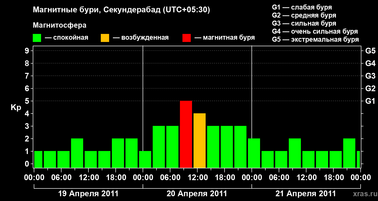 Магнитные бури в Секундерабаде — 21 апреля 2011 года