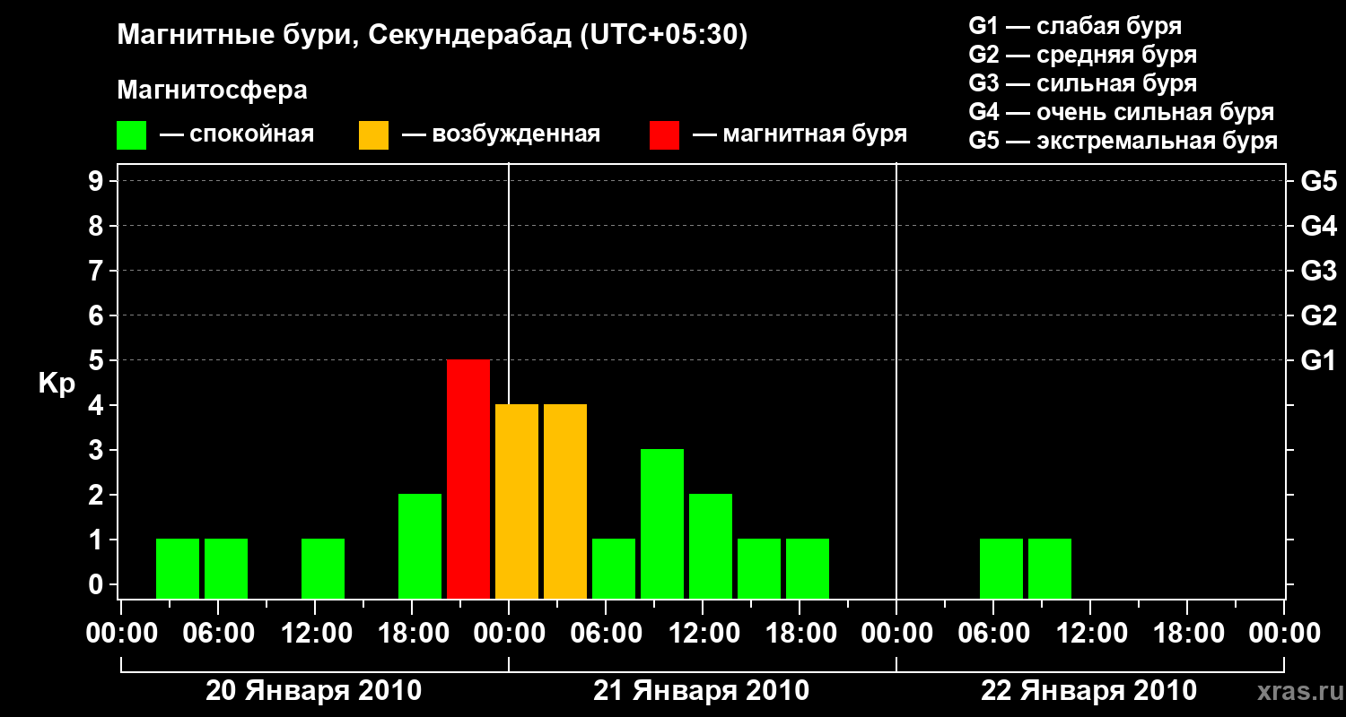 Магнитные бури в Секундерабаде — 22 января 2010 года