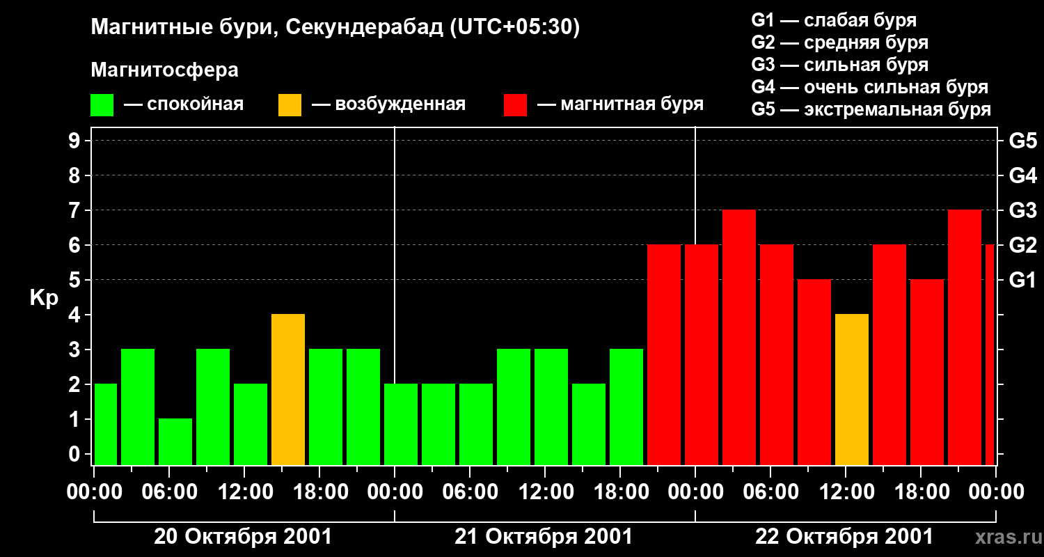 Магнитные бури в Секундерабаде — 22 октября 2001 года