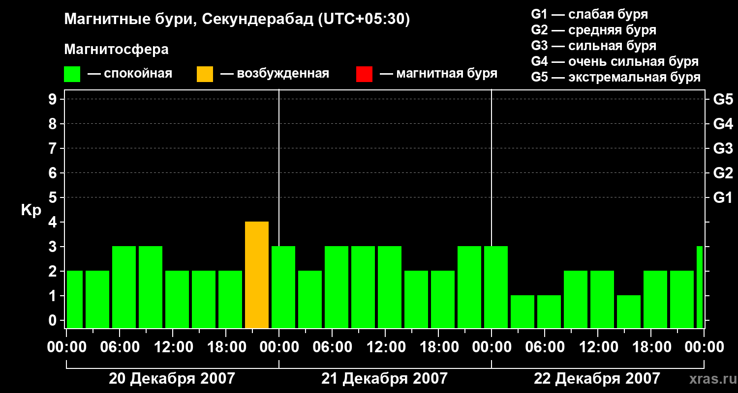 Магнитные бури в Секундерабаде — 22 декабря 2007 года
