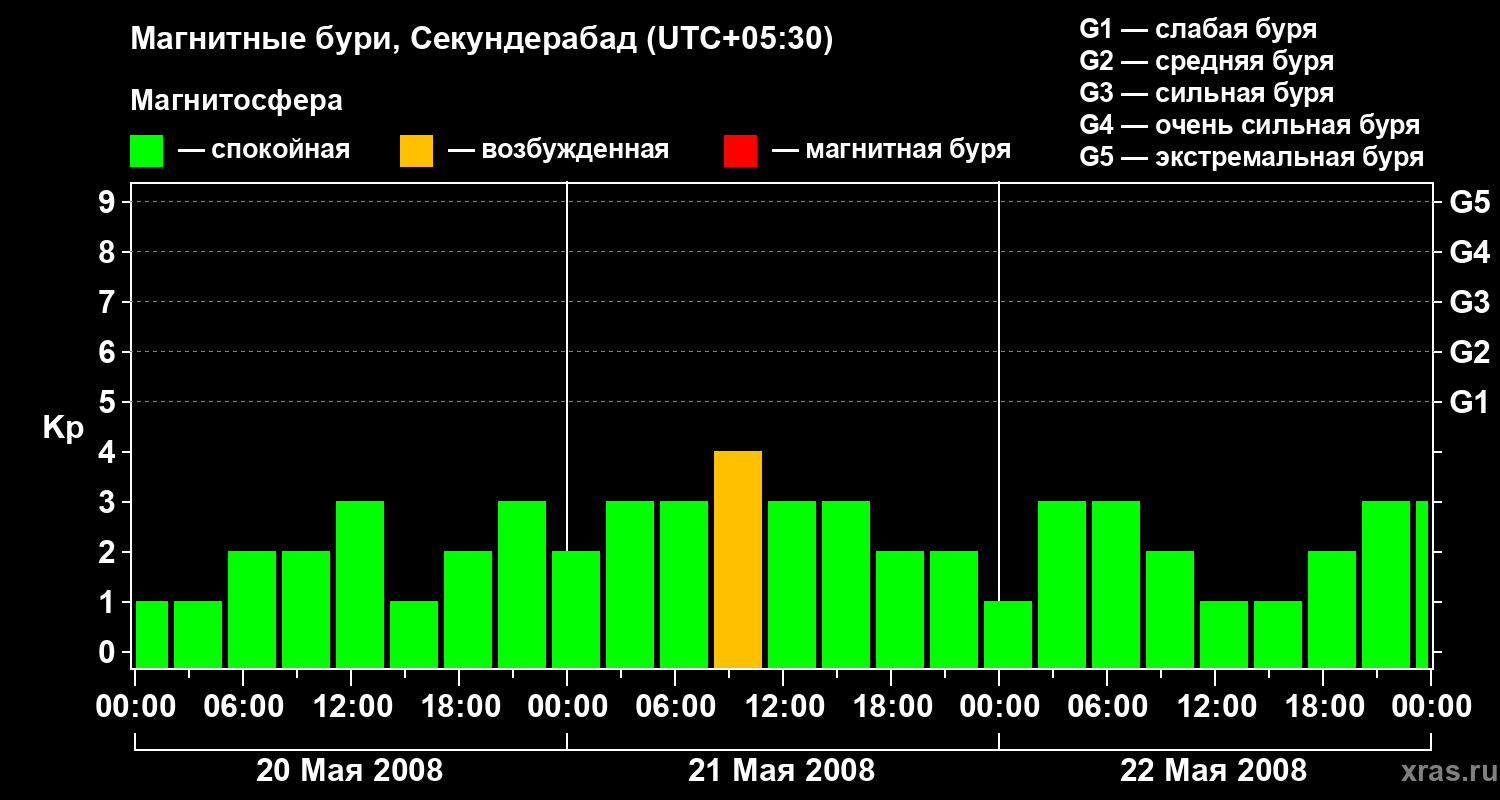 Магнитные бури в Секундерабаде — 22 мая 2008 года