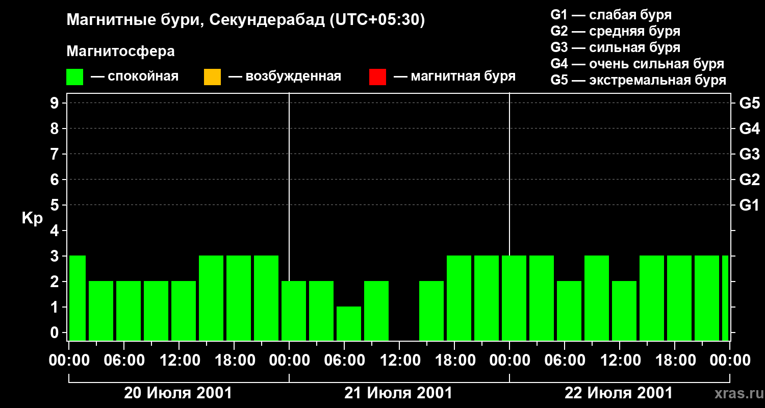 Магнитные бури в Секундерабаде — 22 июля 2001 года