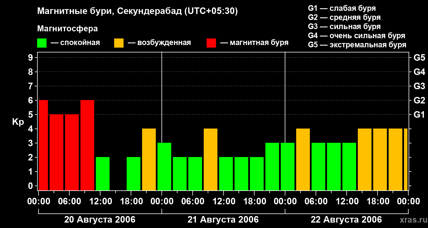 Магнитные бури в Секундерабаде — 22 августа 2006 года