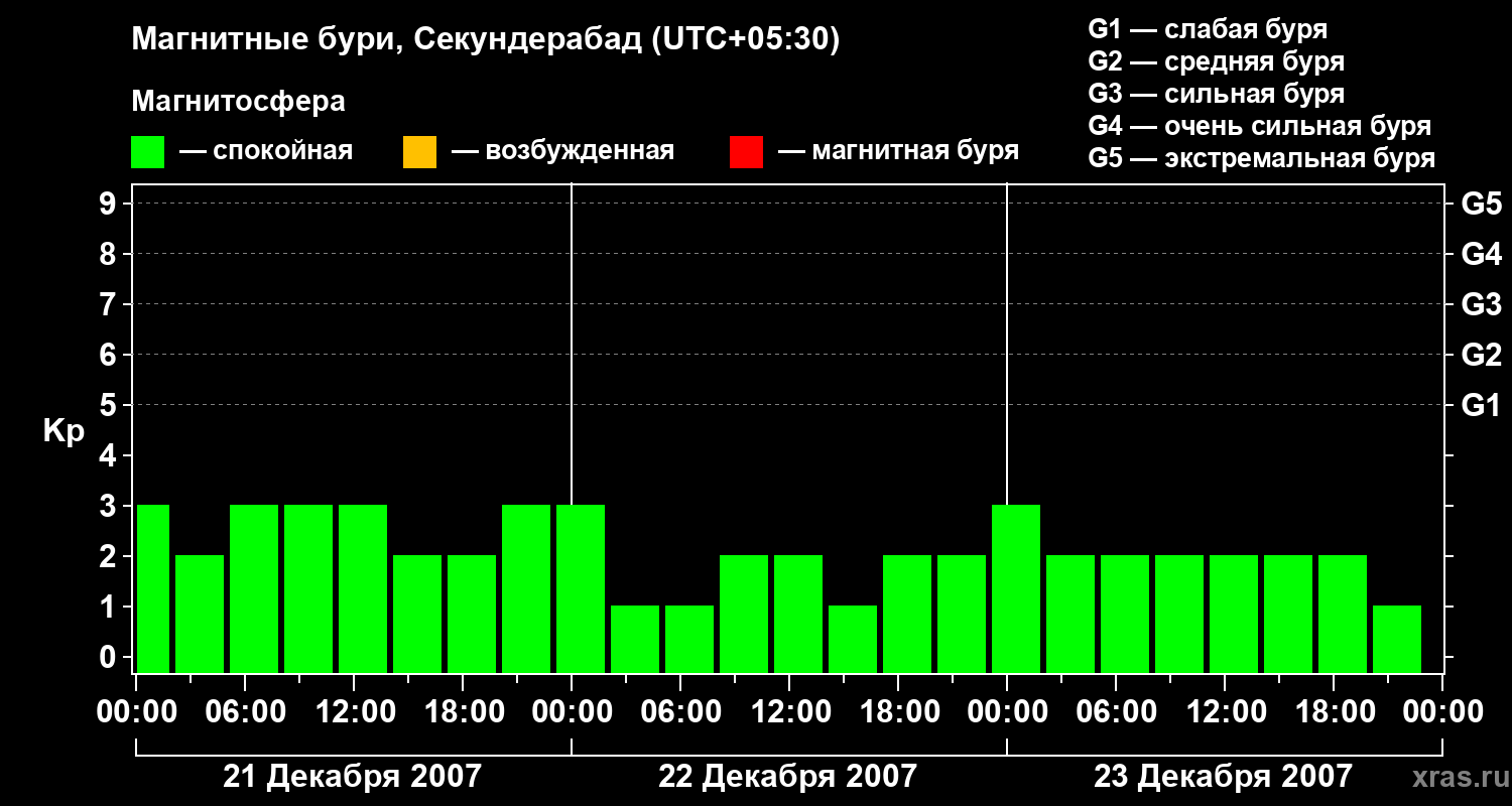 Магнитные бури в Секундерабаде — 23 декабря 2007 года