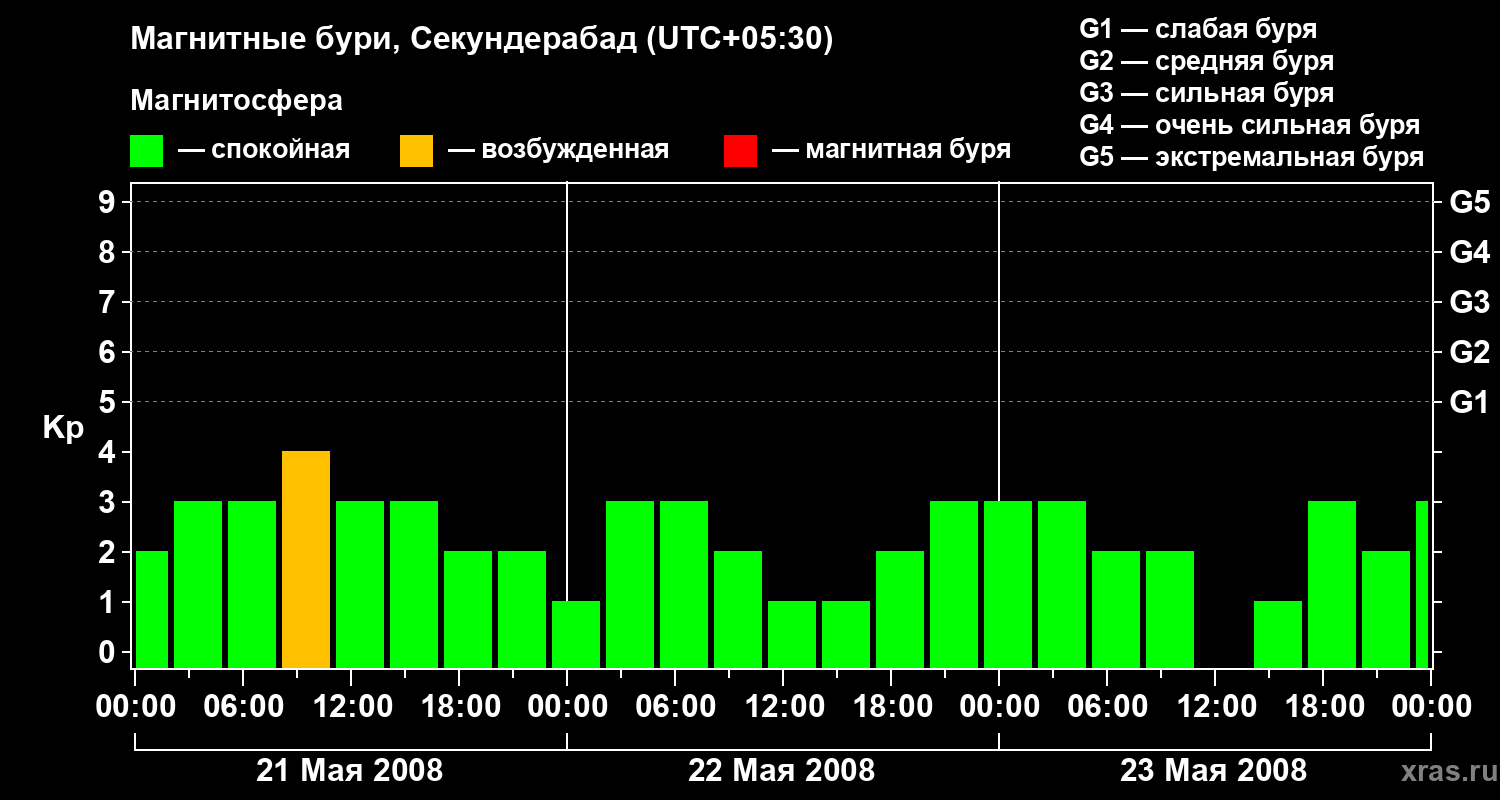 Магнитные бури в Секундерабаде — 23 мая 2008 года