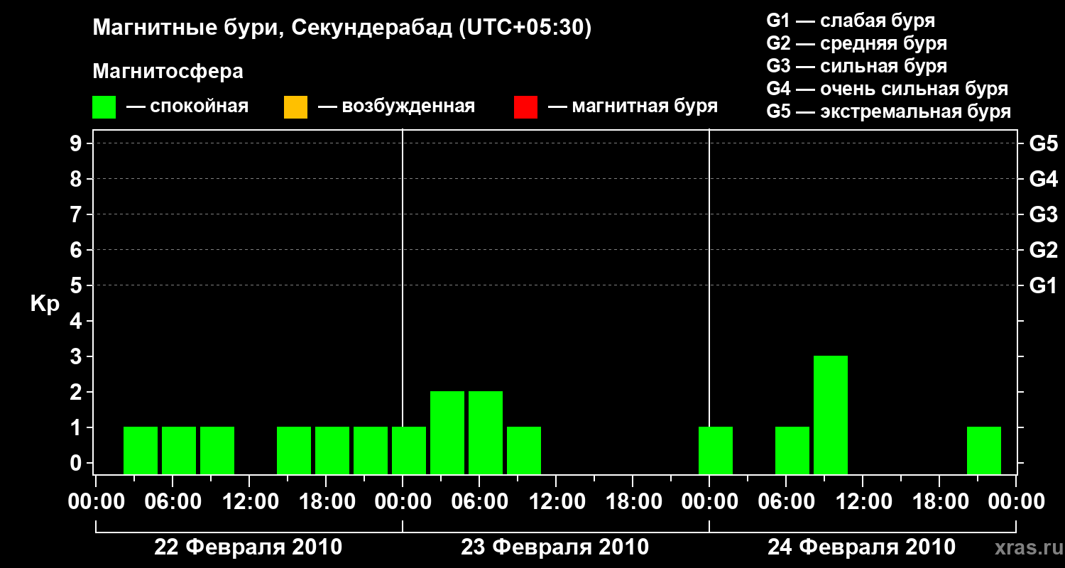 Магнитные бури в Секундерабаде — 24 февраля 2010 года