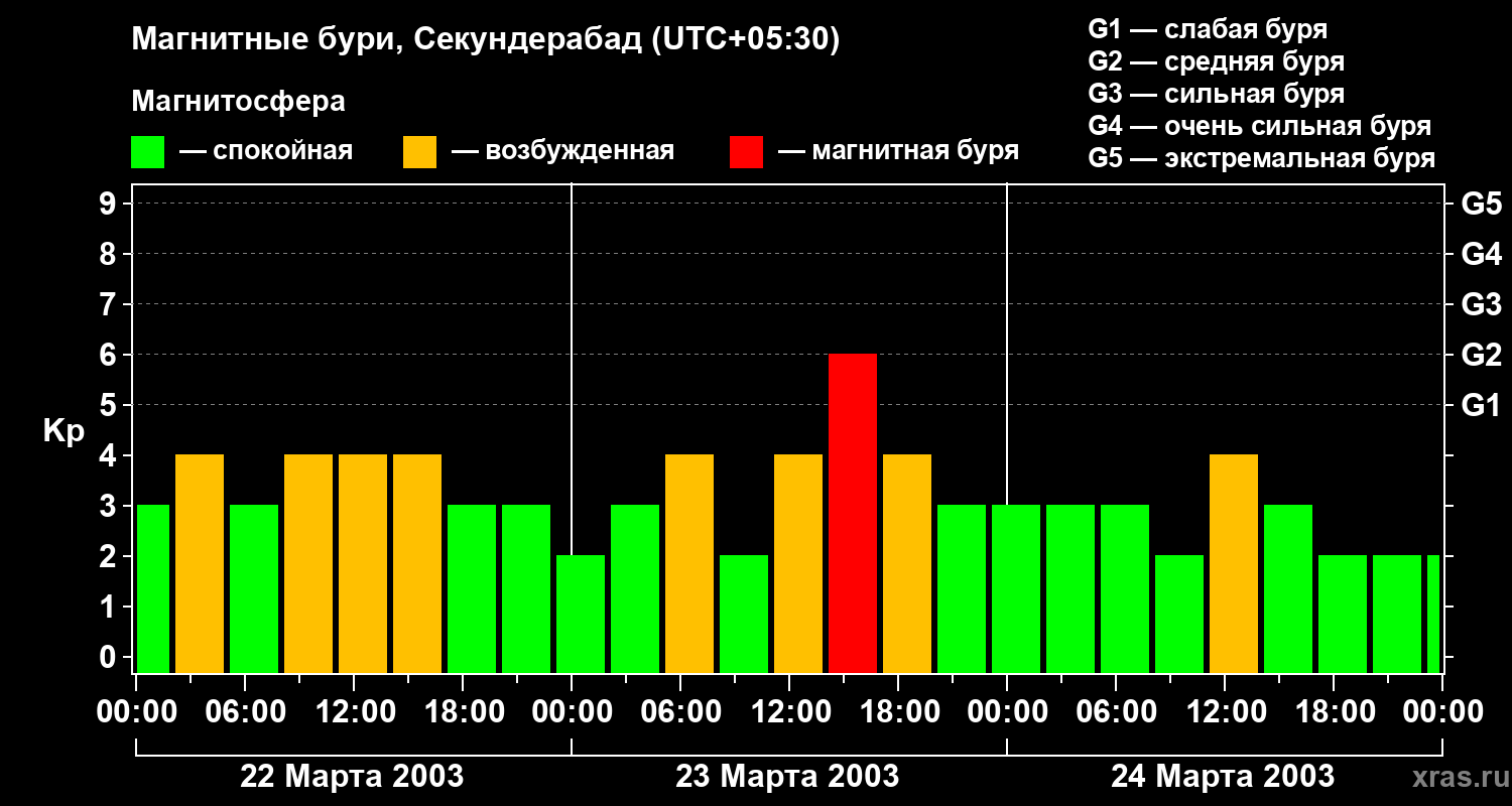 Магнитные бури в Секундерабаде — 24 марта 2003 года