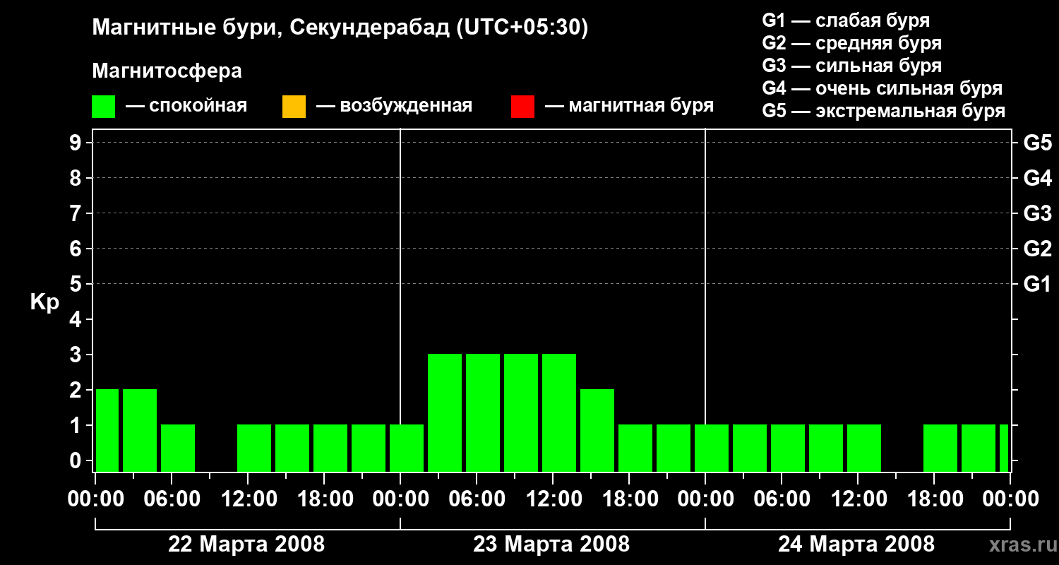 Магнитные бури в Секундерабаде — 24 марта 2008 года