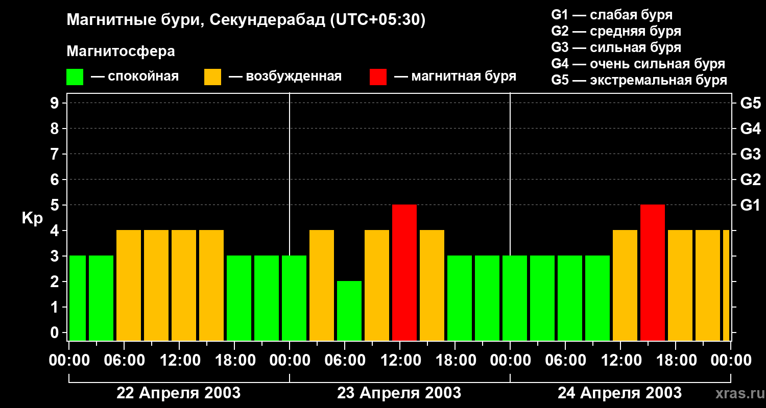 Магнитные бури в Секундерабаде — 24 апреля 2003 года