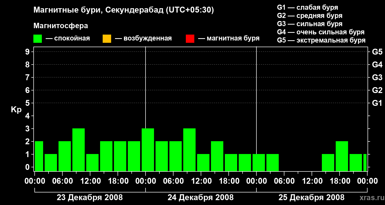 Магнитные бури в Секундерабаде — 25 декабря 2008 года