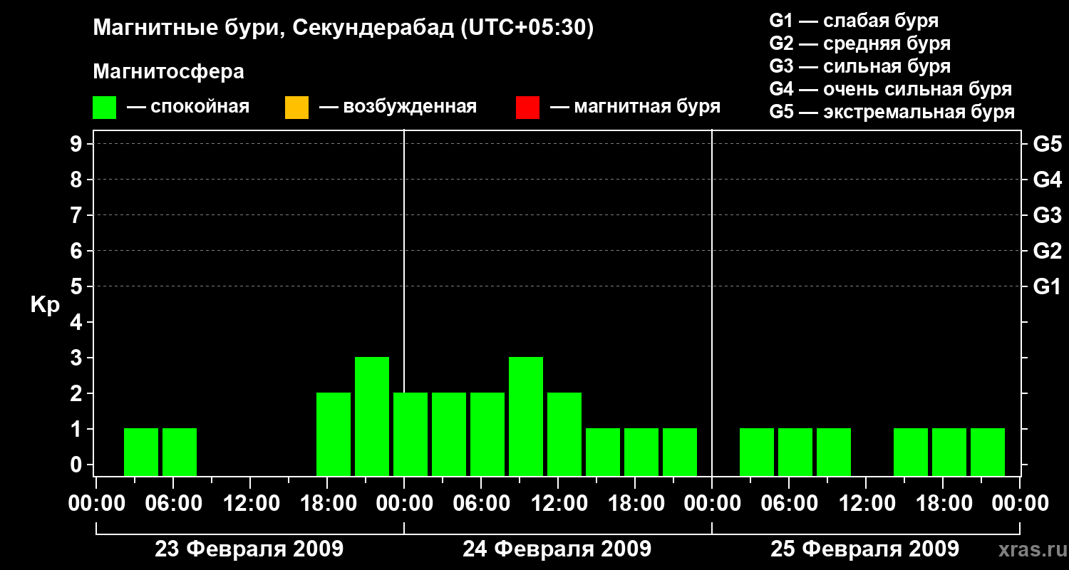 Магнитные бури в Секундерабаде — 25 февраля 2009 года