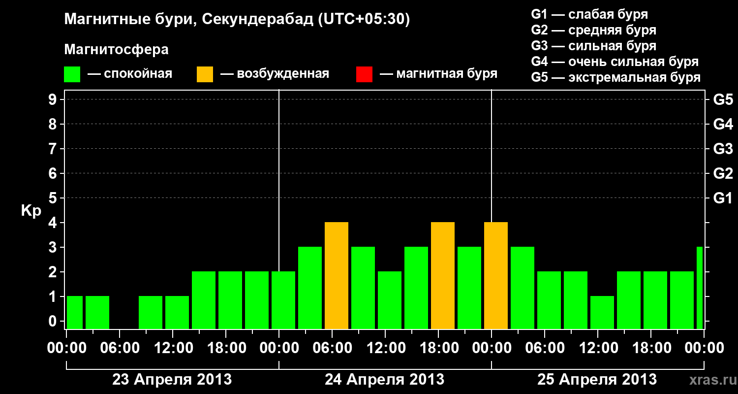 Магнитные бури в Секундерабаде — 25 апреля 2013 года
