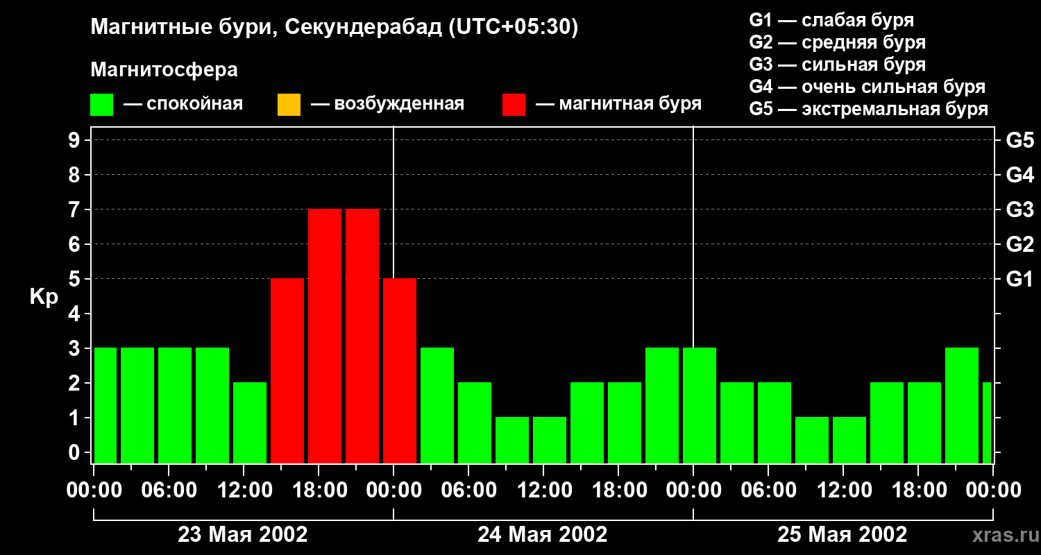 Магнитные бури в Секундерабаде — 25 мая 2002 года