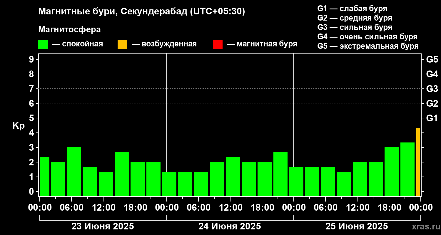 Магнитные бури в Секундерабаде 25 июня 2025 года