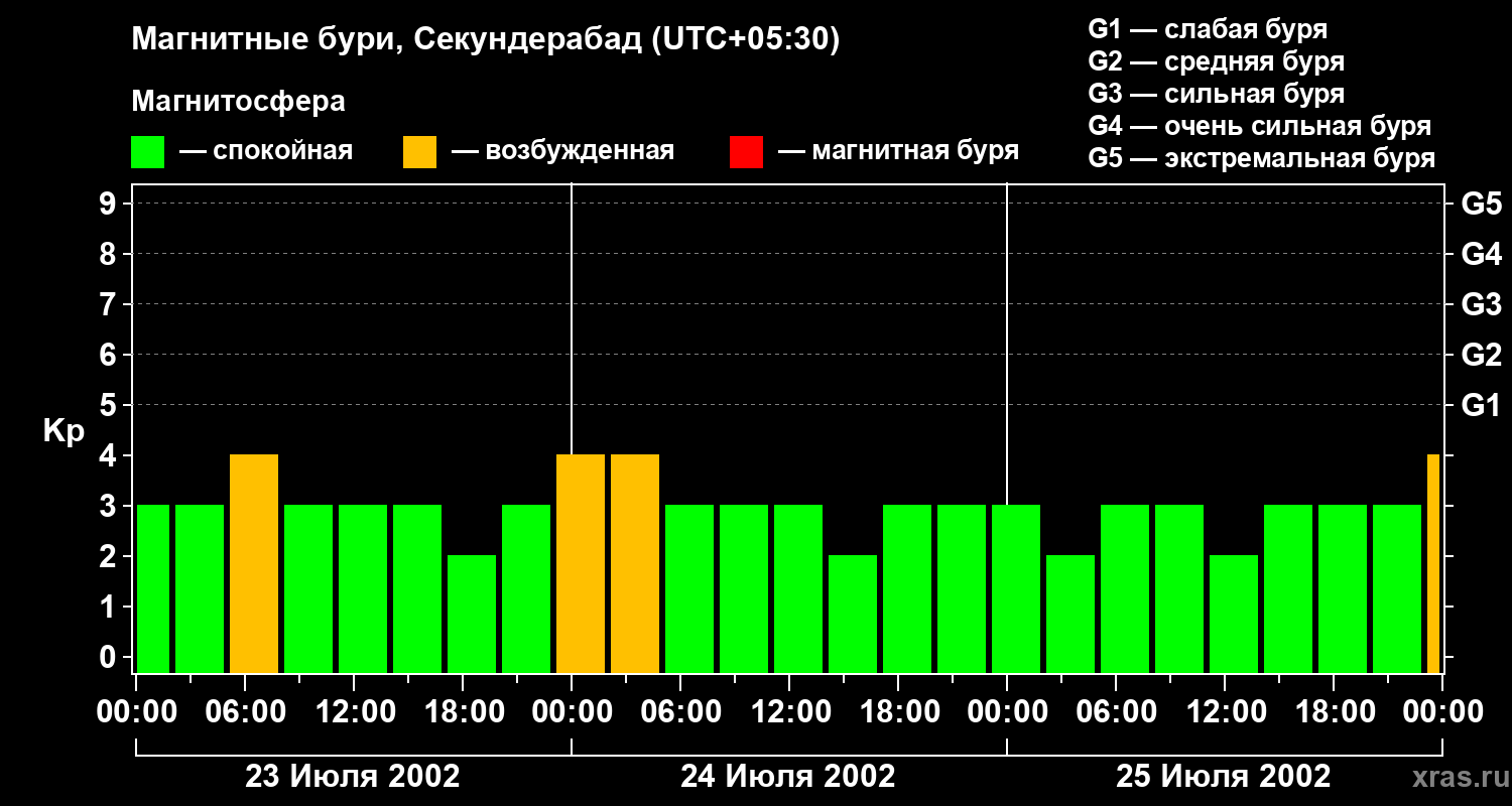 Магнитные бури в Секундерабаде — 25 июля 2002 года