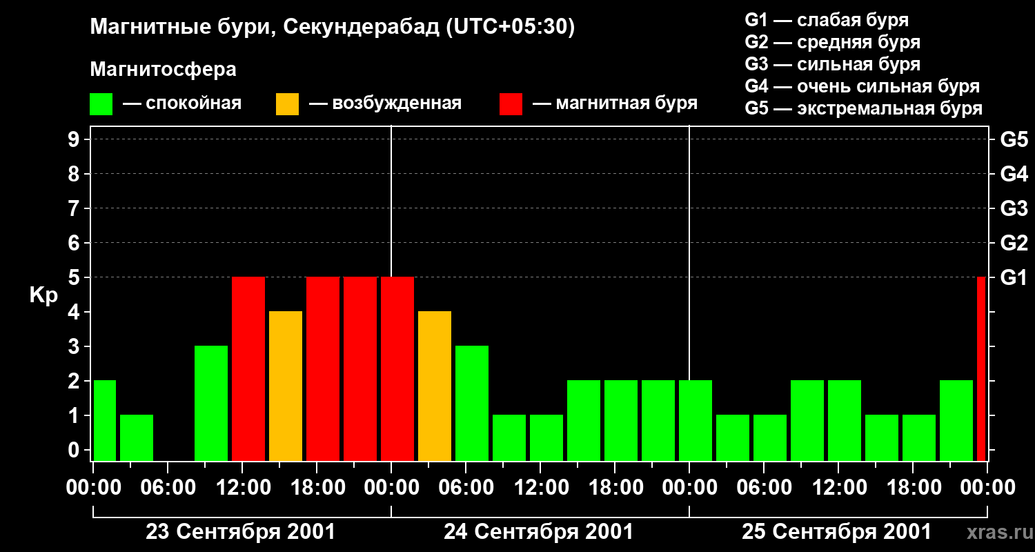 Магнитные бури в Секундерабаде в сентябре 2001 года