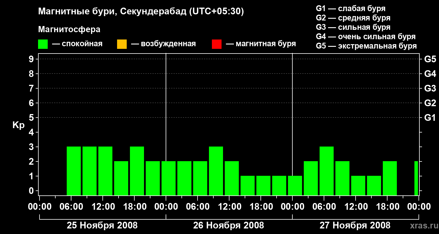 Магнитные бури в Секундерабаде — 27 ноября 2008 года