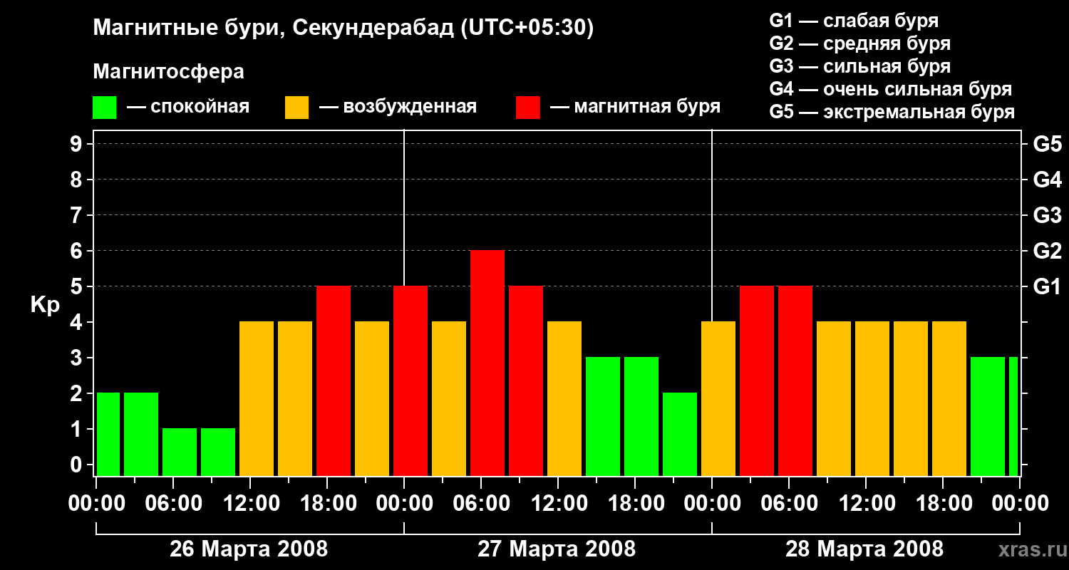 Магнитные бури в Секундерабаде 28 марта 2008 года
