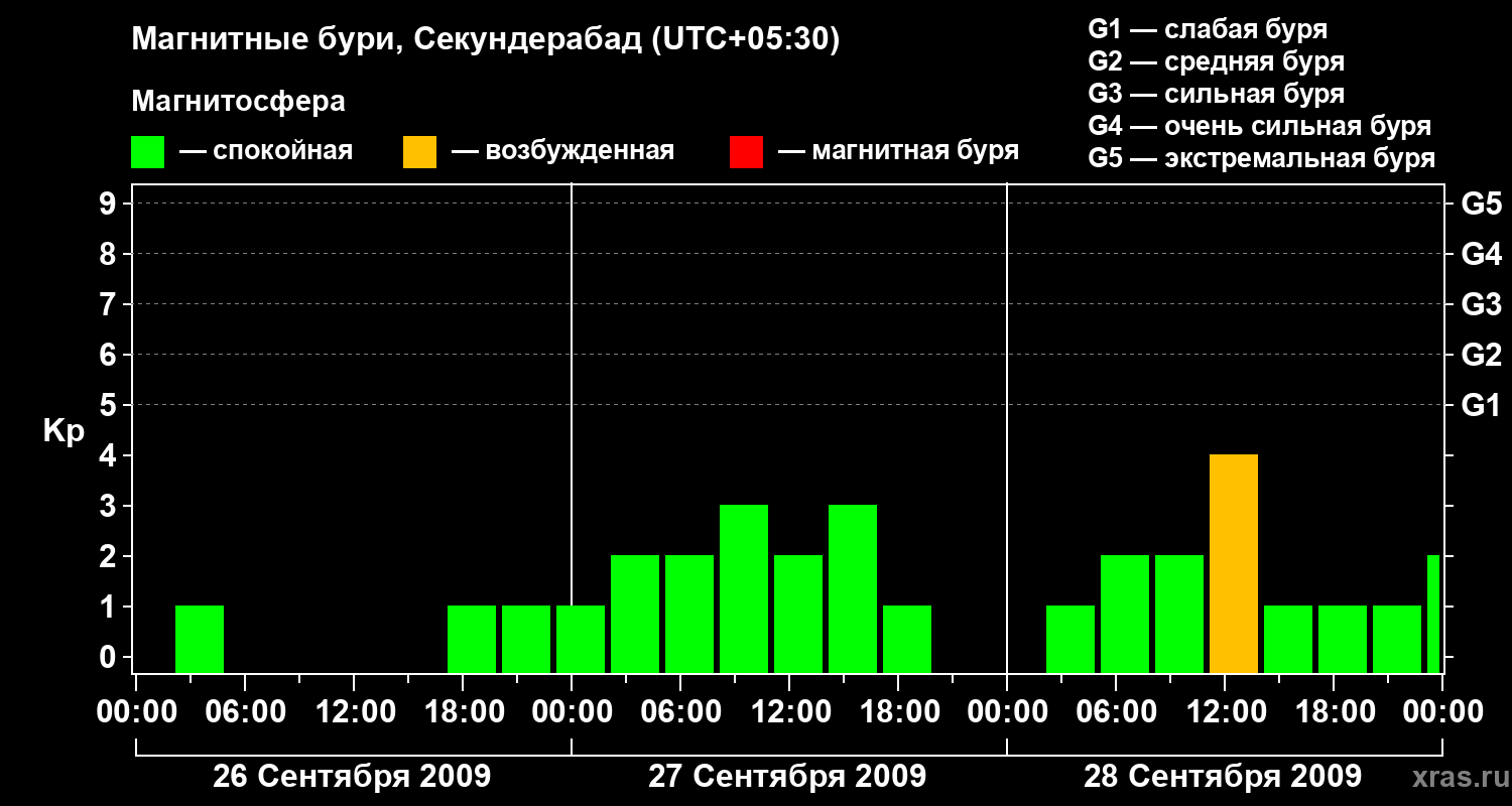 Магнитные бури в Секундерабаде 28 сентября 2009 года
