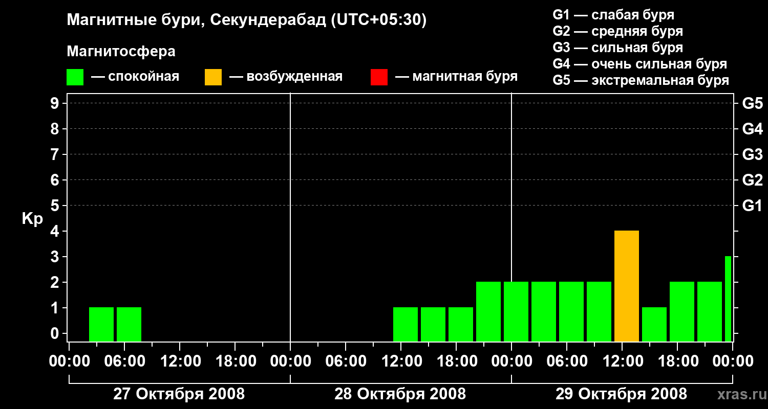 Магнитные бури в Секундерабаде — 29 октября 2008 года