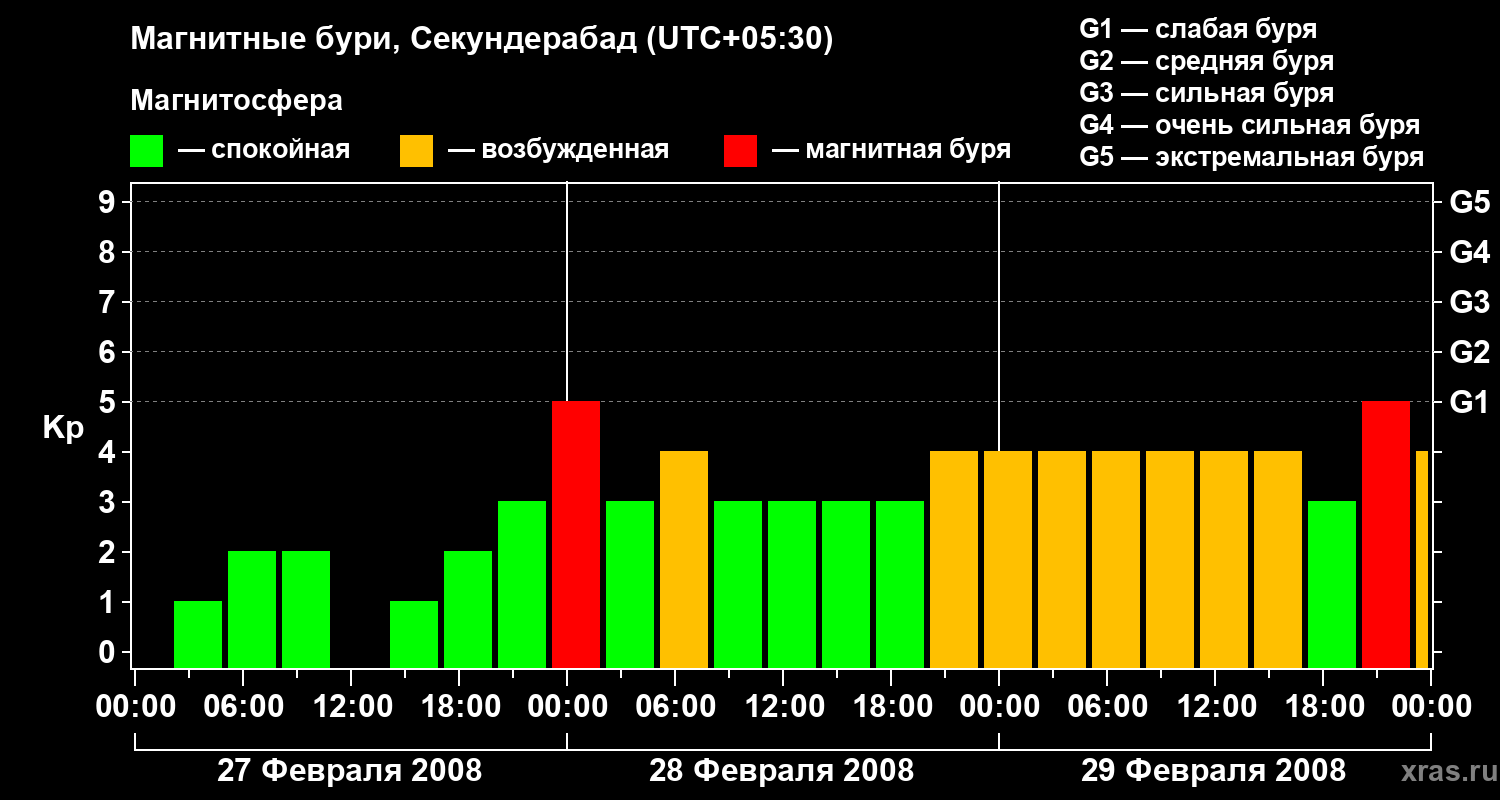 Магнитные бури в Секундерабаде 29 февраля 2008 года