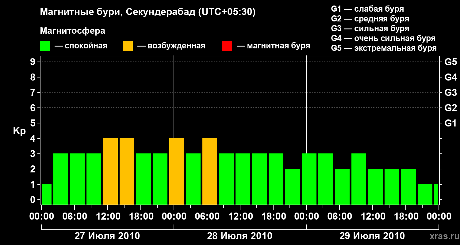 Магнитные бури в Секундерабаде — 29 июля 2010 года