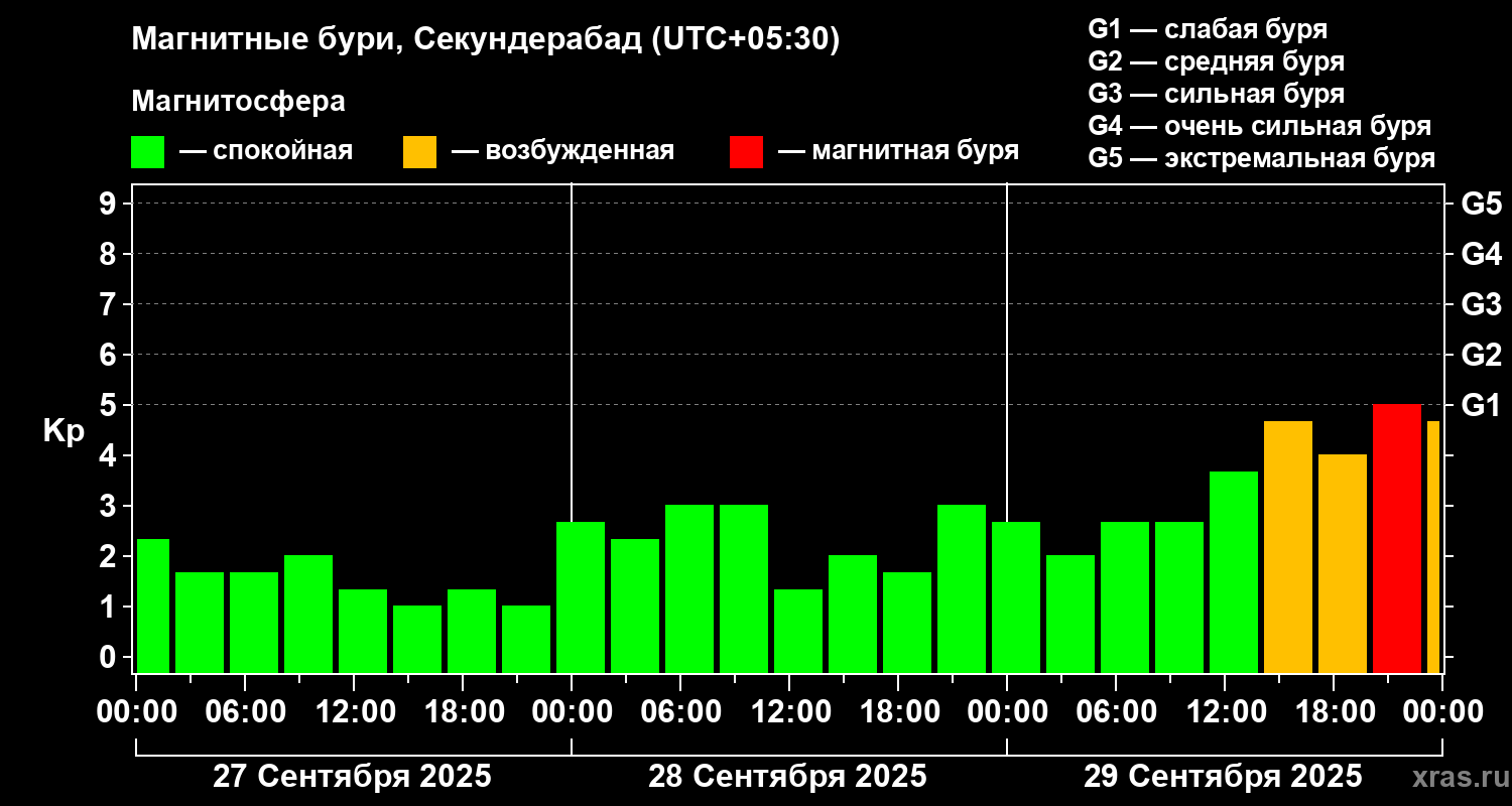 Магнитные бури в Секундерабаде 29 сентября 2025 года