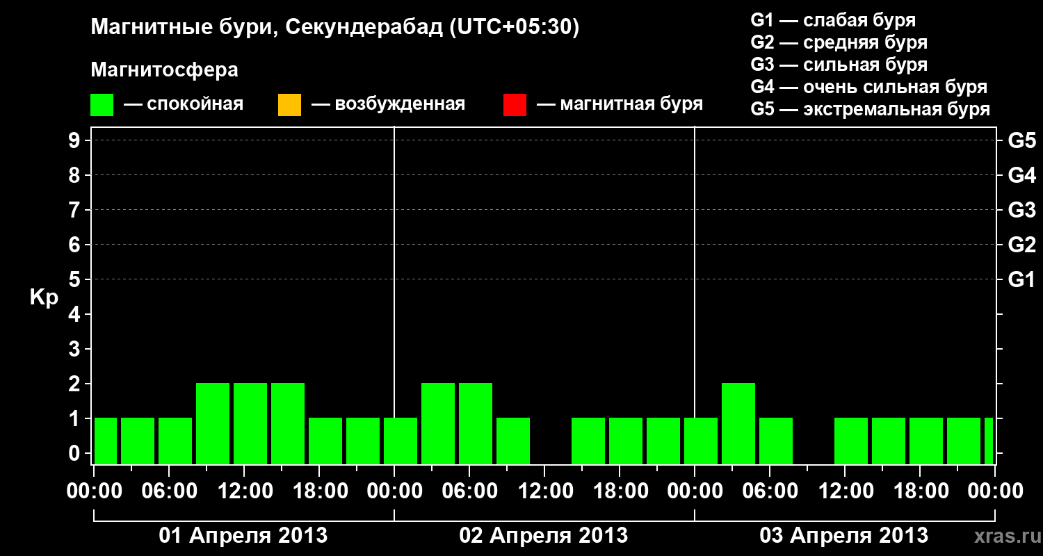 Магнитные бури в Секундерабаде — 3 апреля 2013 года