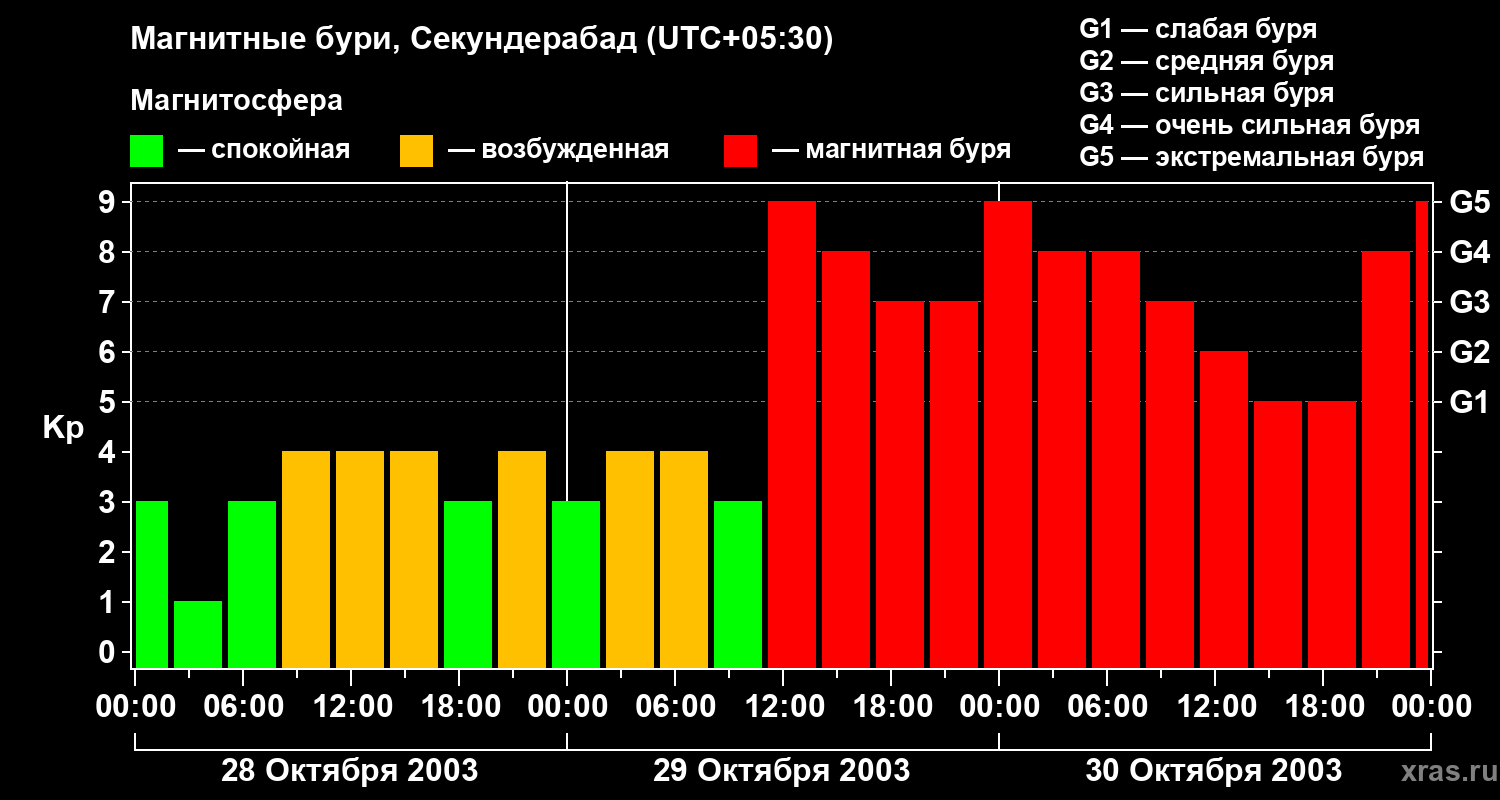 Магнитные бури в Секундерабаде — 30 октября 2003 года