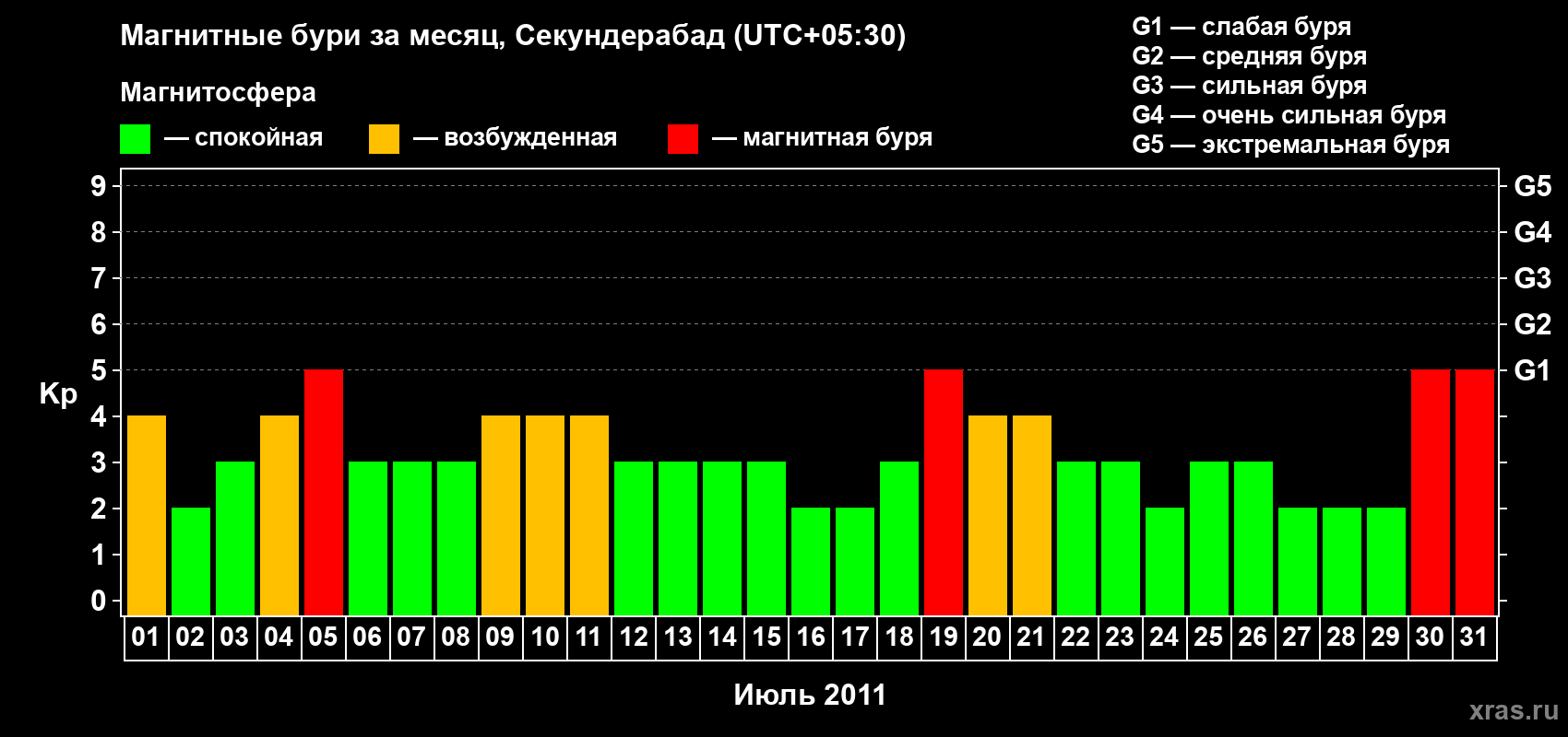 Магнитные бури в Секундерабаде — 31 июля 2011 года