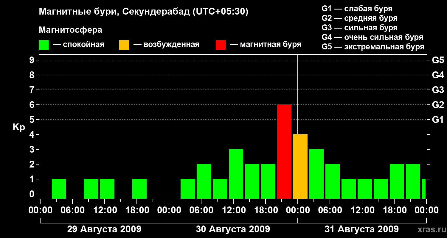 Магнитные бури в Секундерабаде 31 августа 2009 года