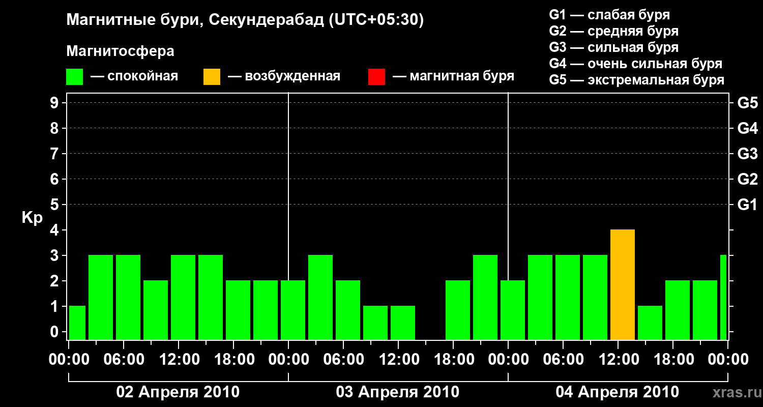 Магнитные бури в Секундерабаде 4 апреля 2010 года