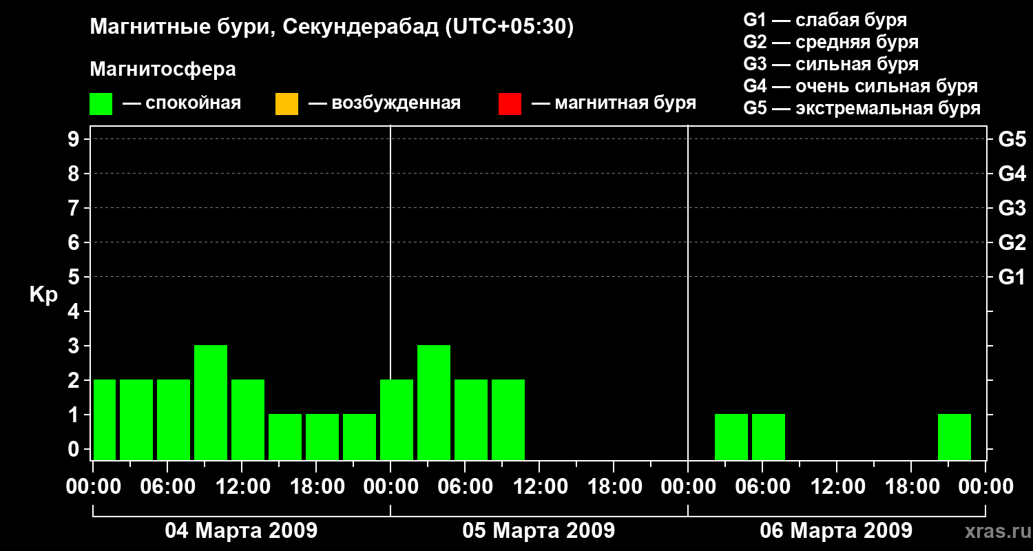 Магнитные бури в Секундерабаде 6 марта 2009 года
