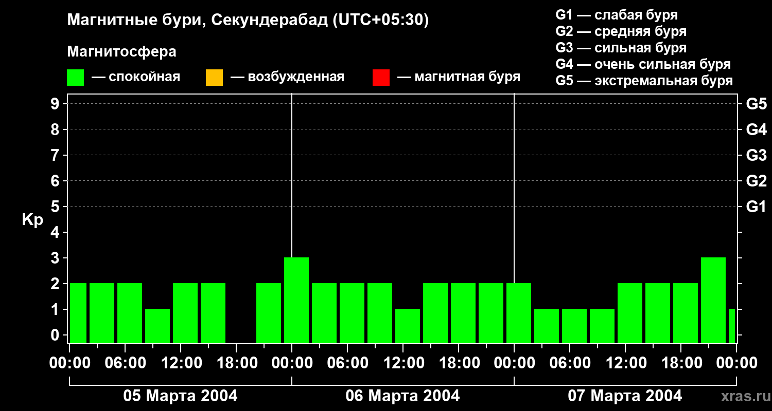 Магнитные бури в Секундерабаде — 7 марта 2004 года