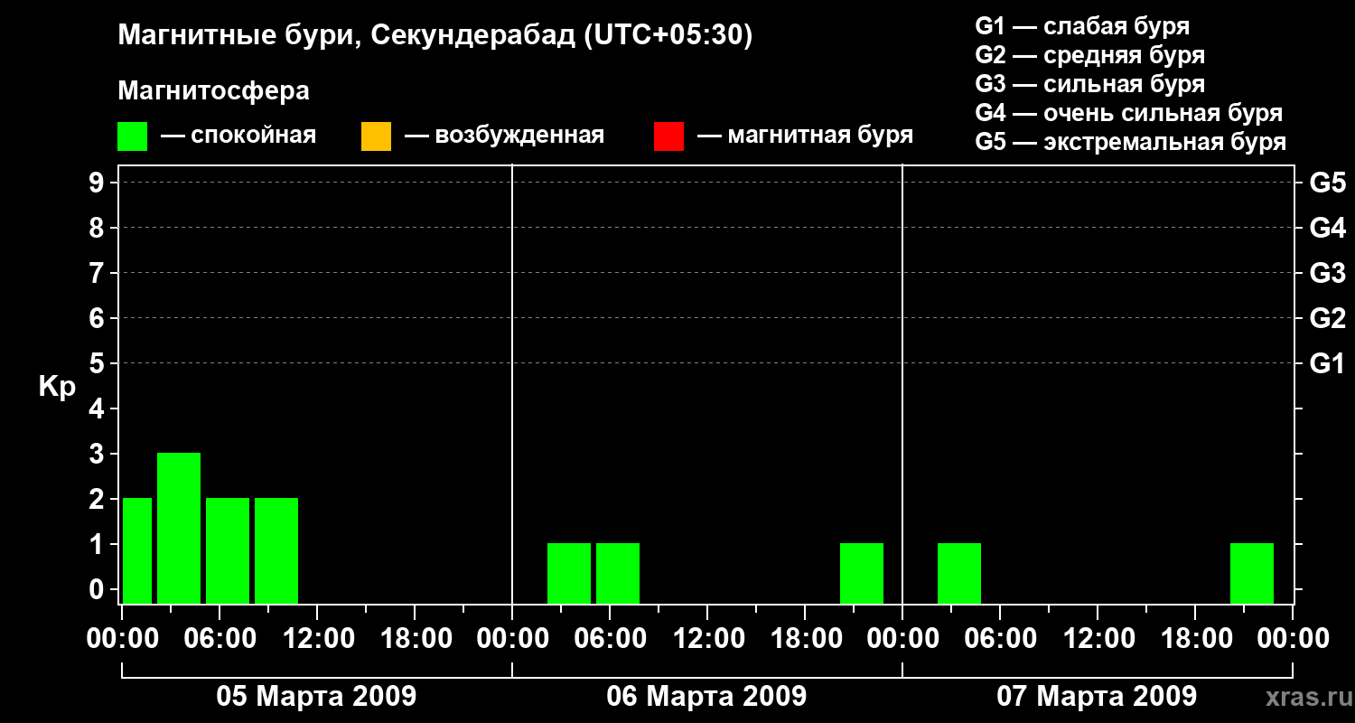 Магнитные бури в Секундерабаде 7 марта 2009 года