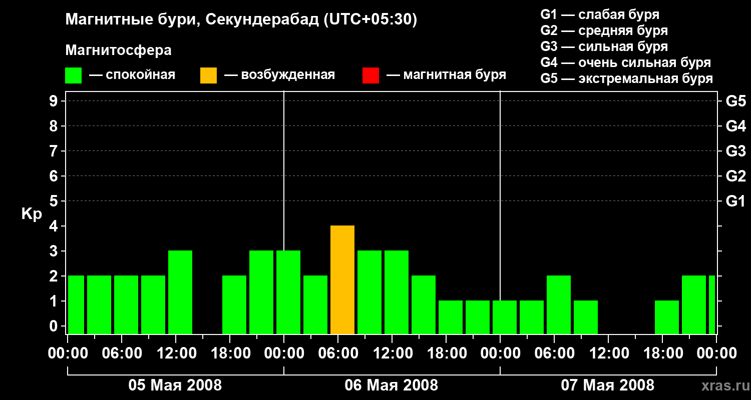 Магнитные бури в Секундерабаде 7 мая 2008 года