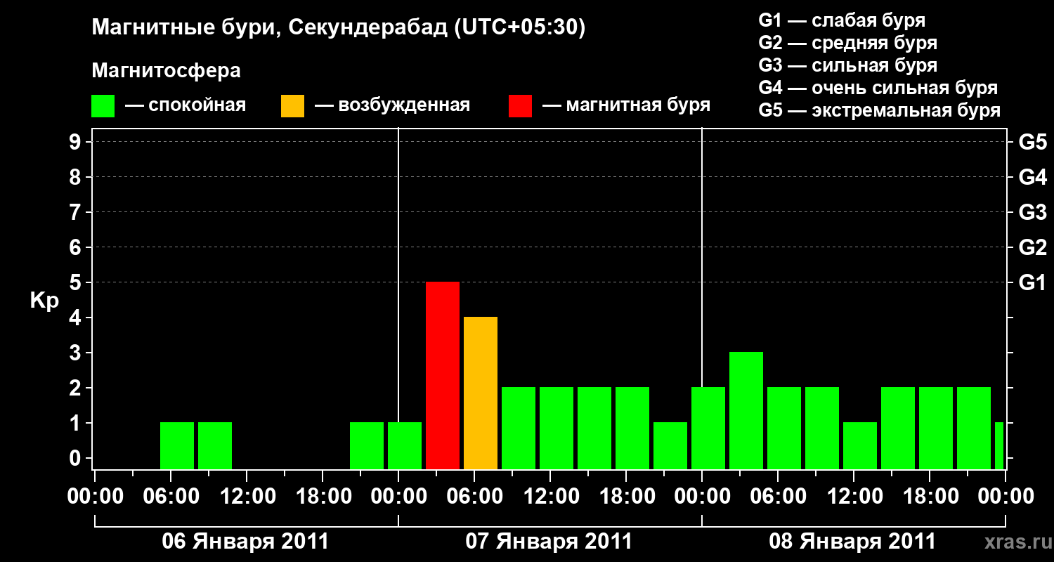 Магнитные бури в Секундерабаде — 8 января 2011 года