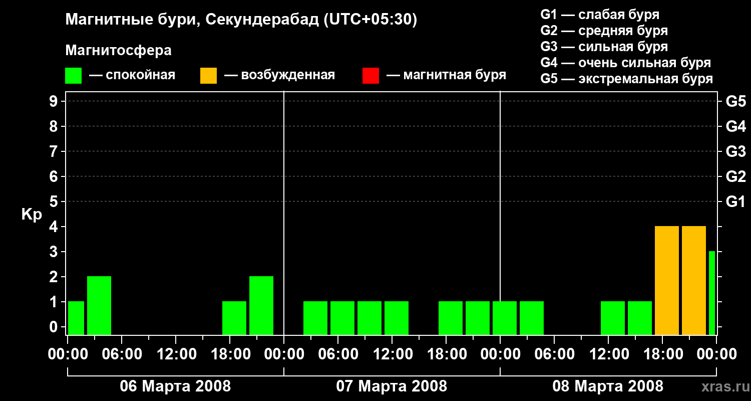 Магнитные бури в Секундерабаде 8 марта 2008 года