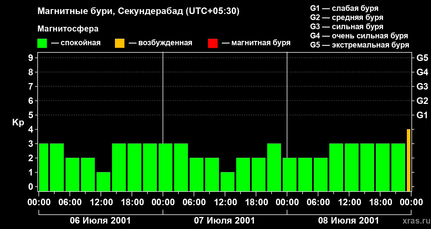 Магнитные бури в Секундерабаде — 8 июля 2001 года