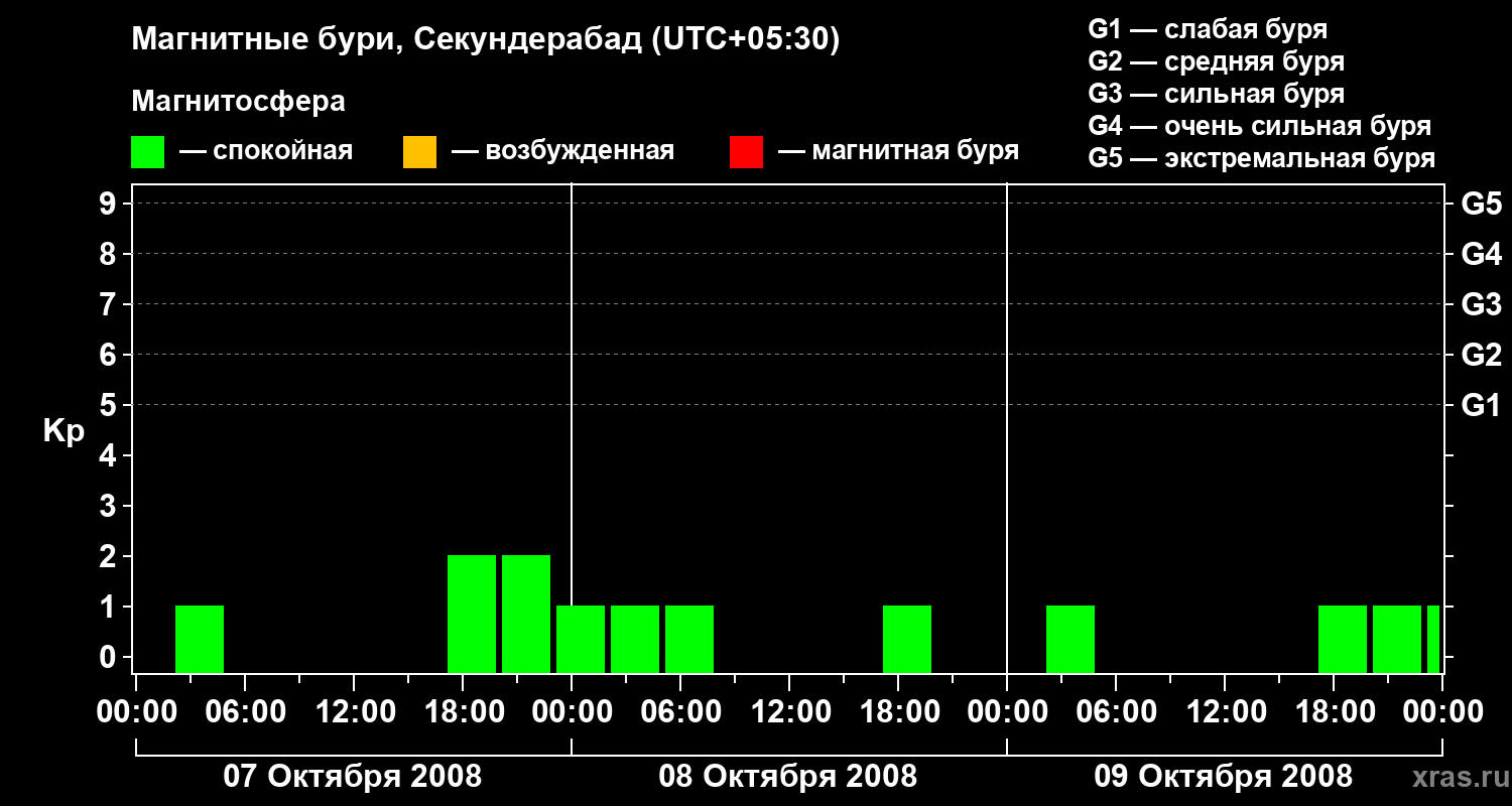 Магнитные бури в Секундерабаде — 9 октября 2008 года