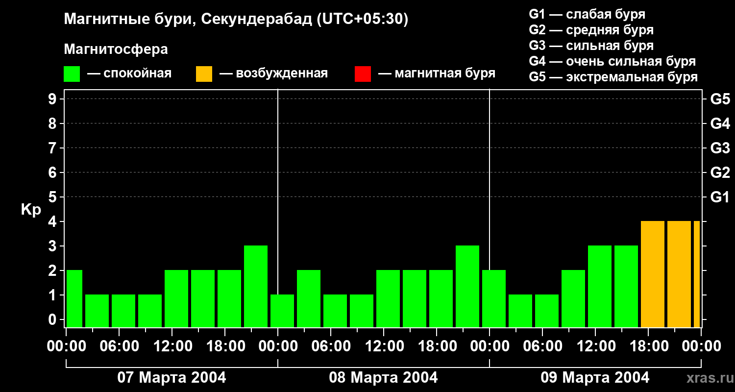 Магнитные бури в Секундерабаде — 9 марта 2004 года
