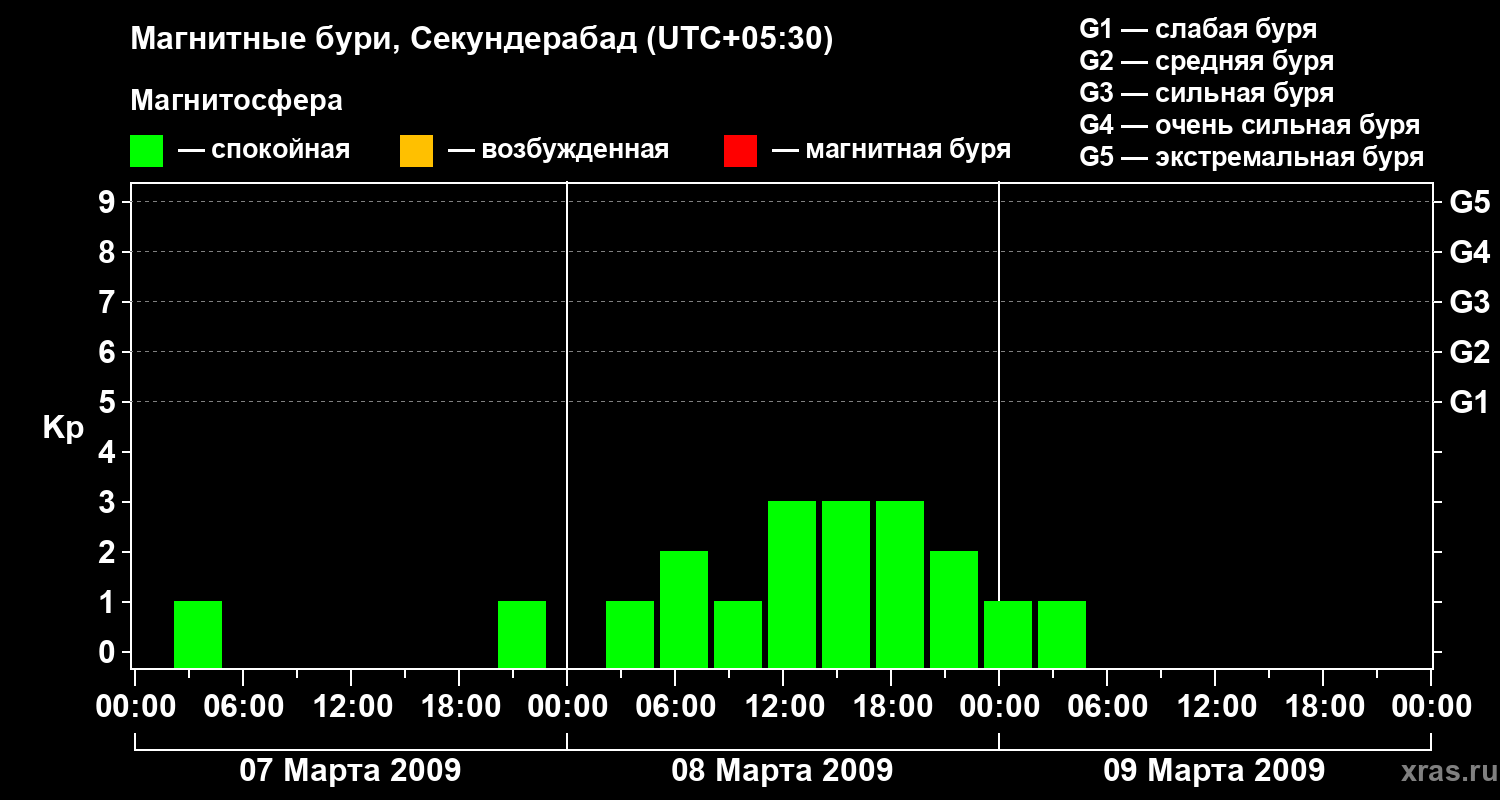 Магнитные бури в Секундерабаде — 9 марта 2009 года