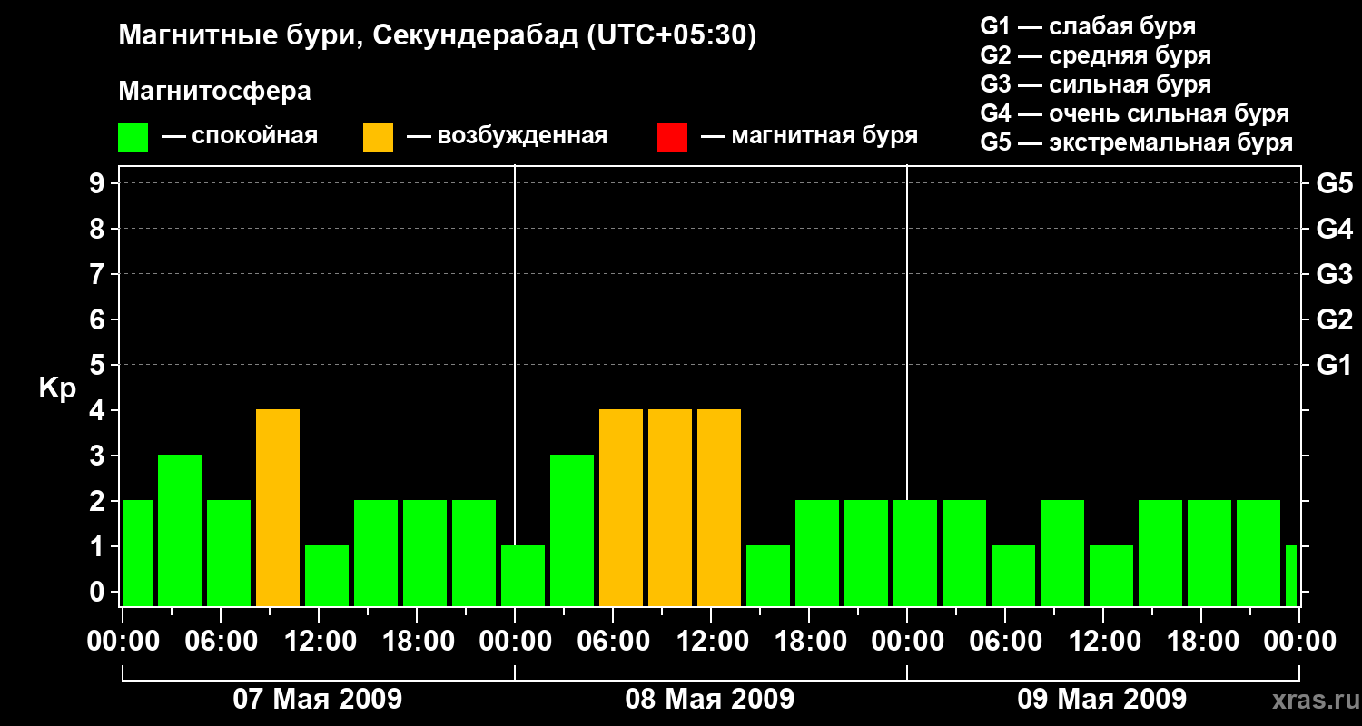 Магнитные бури в Секундерабаде — 9 мая 2009 года