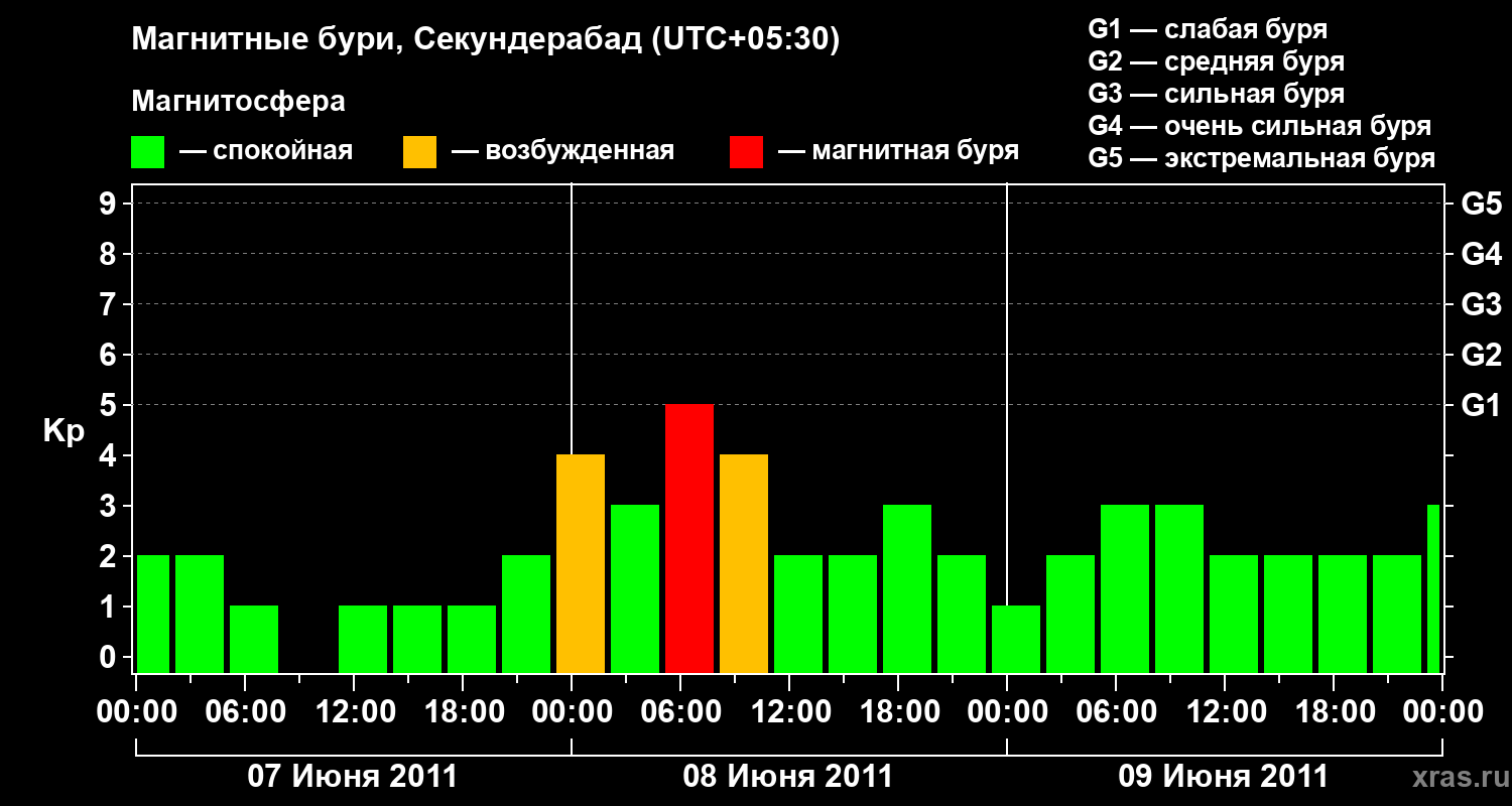 Магнитные бури в Секундерабаде 9 июня 2011 года