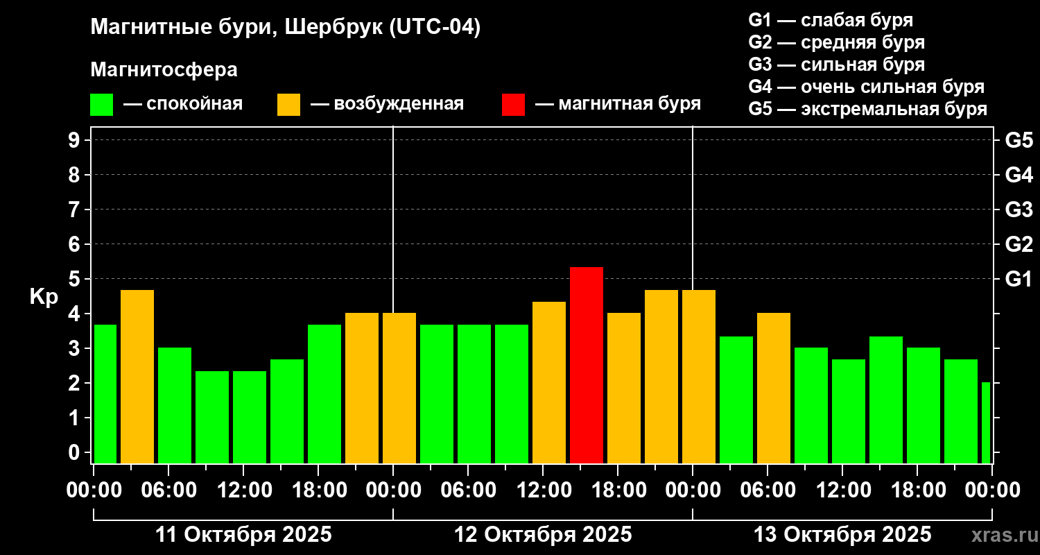 Магнитные бури в Шербруке 13 октября 2025 года