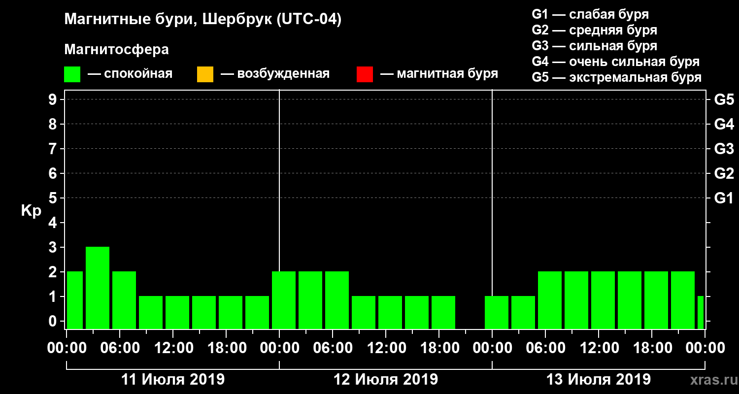 Магнитные бури в Шербруке — 13 июля 2019 года