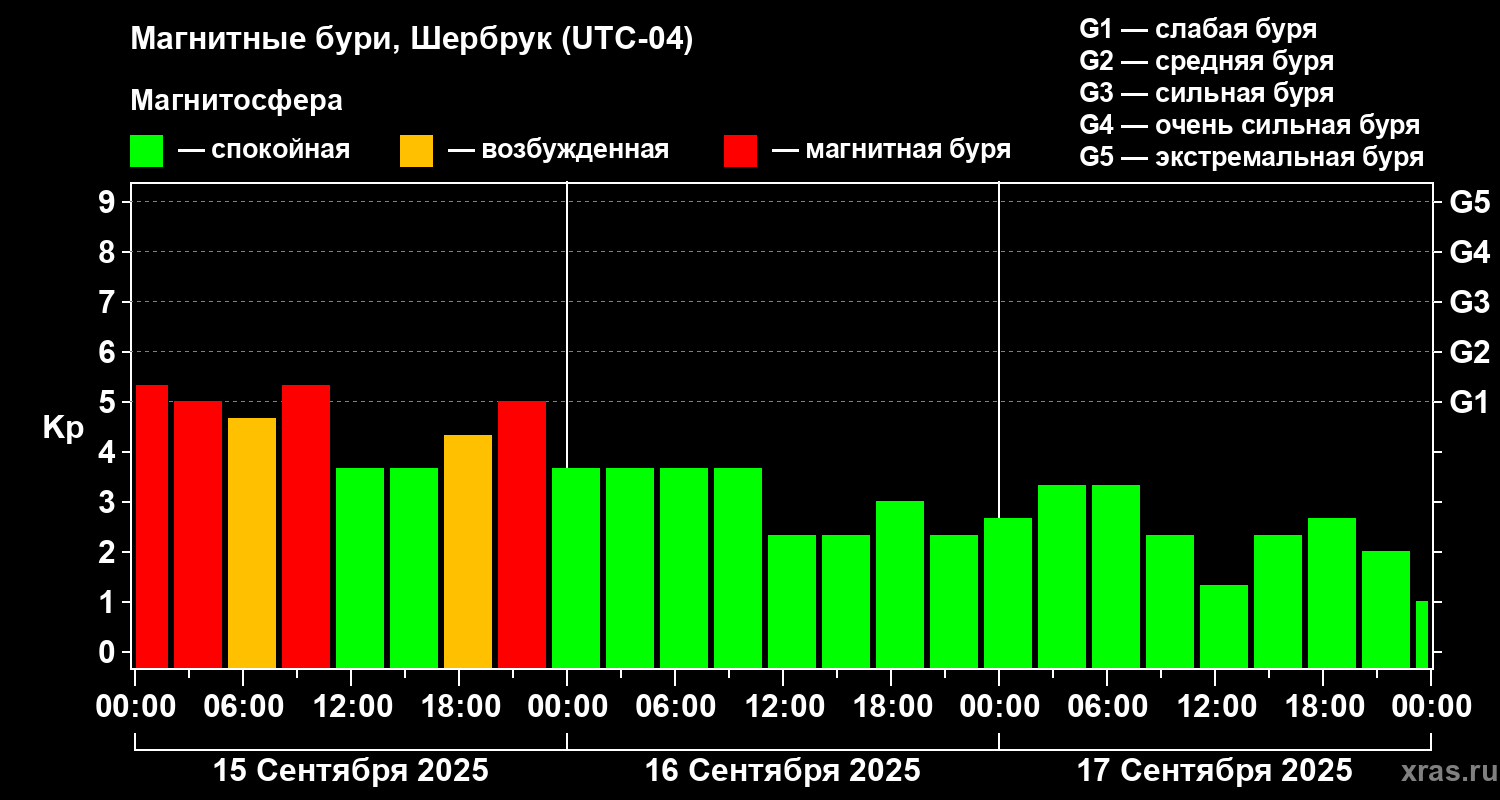 Магнитные бури в Шербруке 17 сентября 2025 года