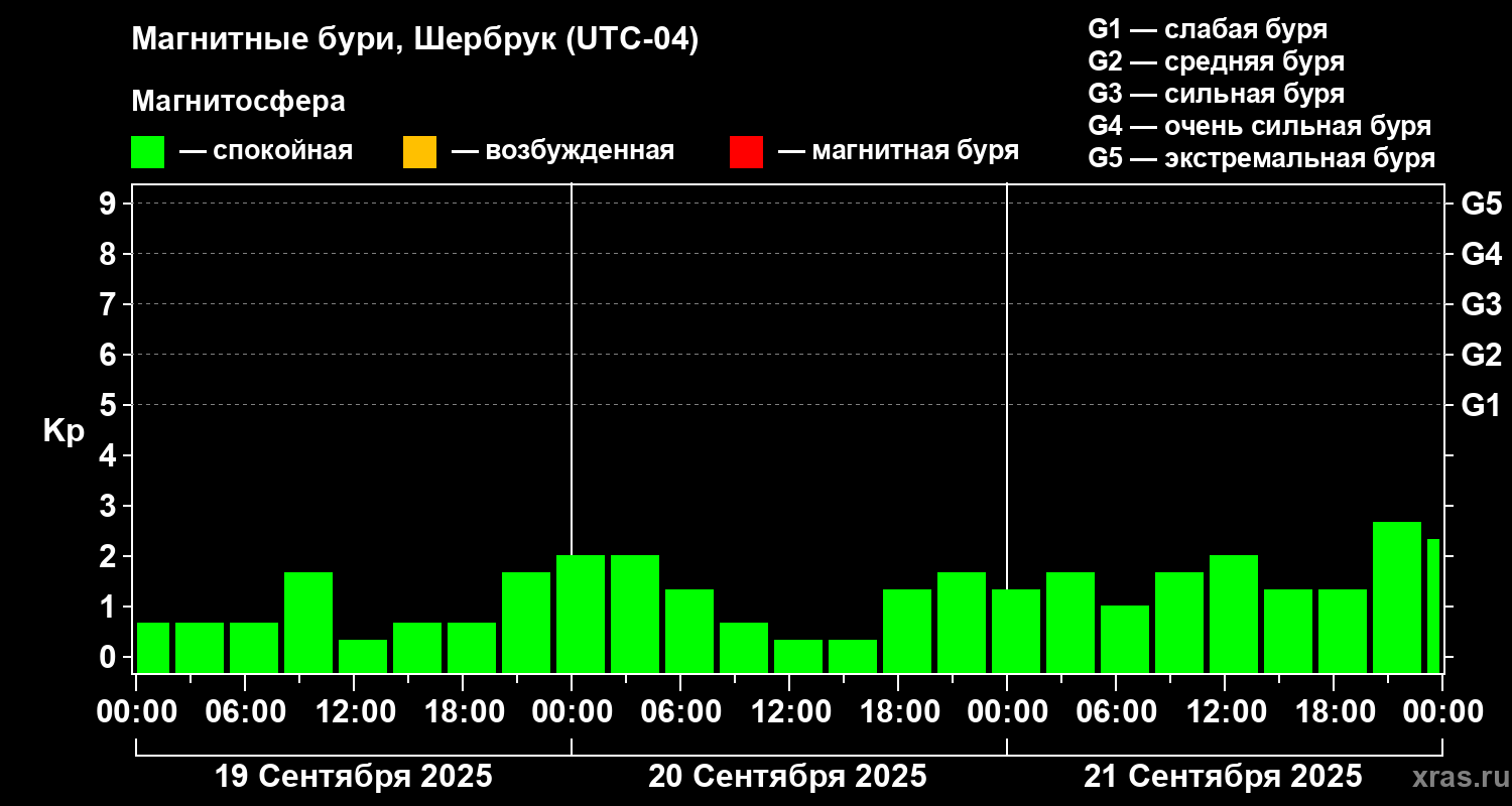 Магнитные бури в Шербруке 21 сентября 2025 года