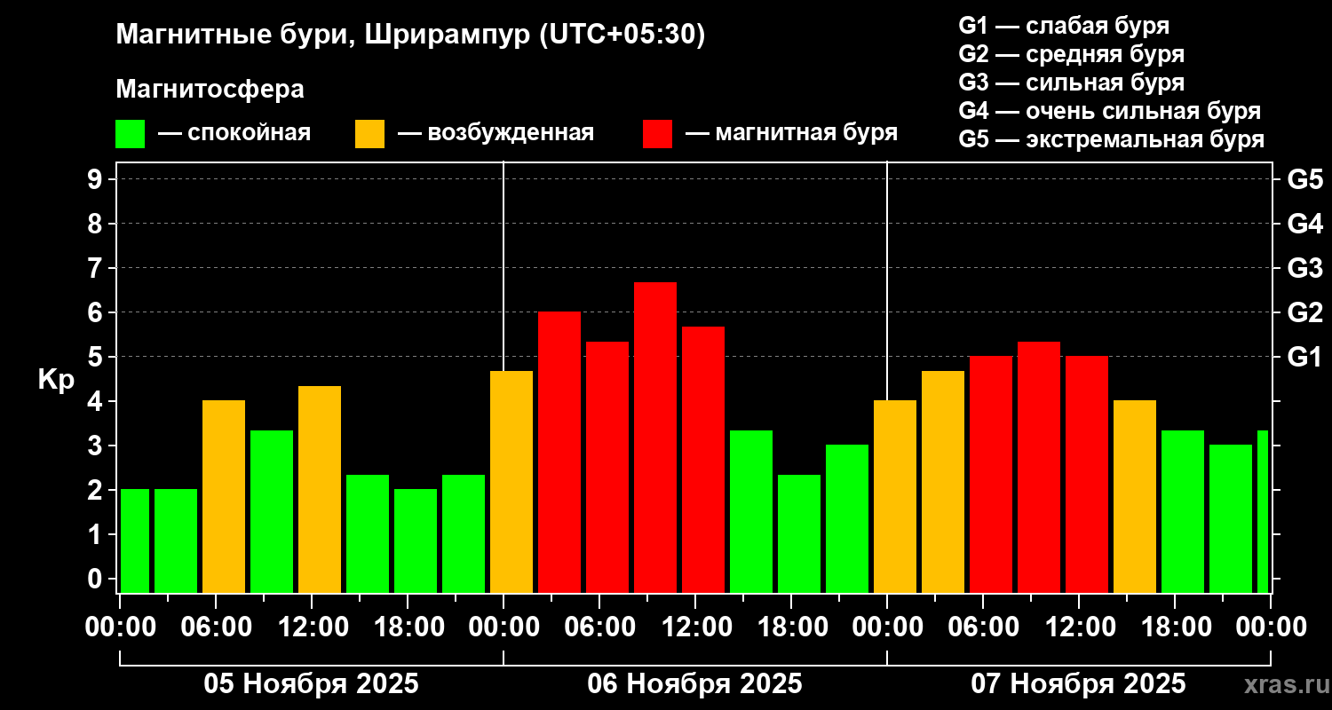 Магнитные бури в Шрирампуре 7 ноября 2025 года