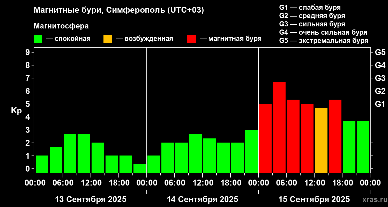 Магнитные бури в Симферополе 15 сентября 2025 года